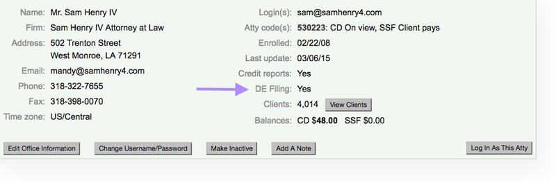 - A client signs up for SSF with an attorney code that the attorney has opted-in to eFiling.